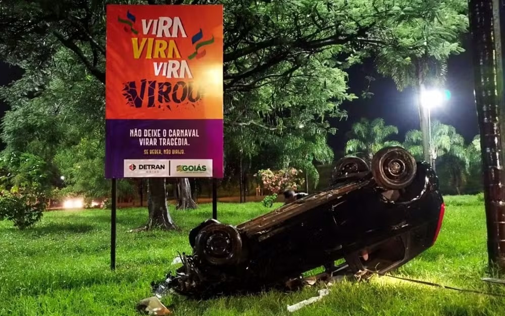 O Departamento Estadual de Trânsito de Goiás (Detran-GO) surpreendeu moradores e motoristas de Goiânia ao instalar 10 carros capotados em diferentes pontos da cidade. A ação, parte da campanha “Vira, Vira, Vira, Virou: Não deixe o carnaval virar uma tragédia”, tem como objetivo alertar sobre os perigos de dirigir sob efeito de álcool e em alta velocidade durante o período festivo.